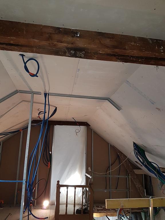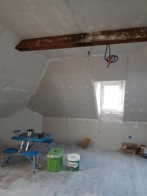 de plaques de plâtre, de carreaux de plâtre, de carreaux de brique, de cloisons en brique et l'aménagement des combles.